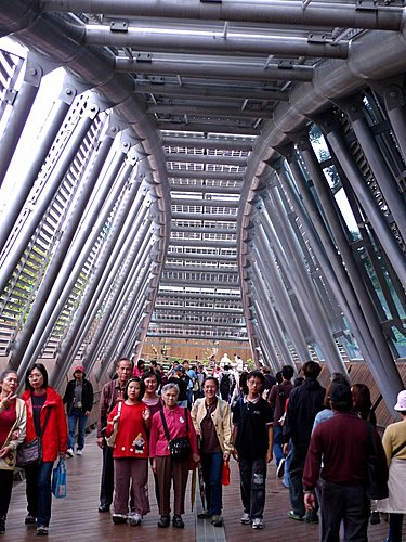離開花茶殿之後,我們往"花之隧道"前進,再次嘗試美術園區4:30舞蝶館的百合戀,依舊是人滿到外面來,闖關再次失敗。這是新生園區通往美術園區的造景和橋樑,照相都很漂亮。