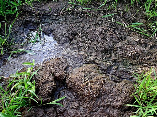 回到車上,往前開一小段距離,看到這個"活盆地"的指標,再次停車,鄉間小吃的老闆建議我們租雨鞋,每雙20元,我們穿的是高筒防水的登山鞋,所以錢就省下來了,這個好玩哦!