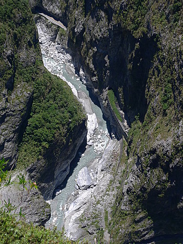 3.1公里"斷崖駐在所"之後是全程最精華的路段,下面就是太魯閣著名的"九曲洞",立霧溪和中橫公路懸在我們的腳下,路上的車子像玩具車一樣,彷彿一腳就可以踩碎。