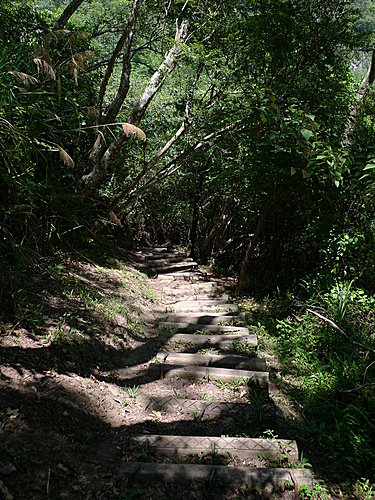 之後開始下坡,經過"一號隧道";1.8公里之後,步道開始階梯陡下,直到"錐麓吊橋"。