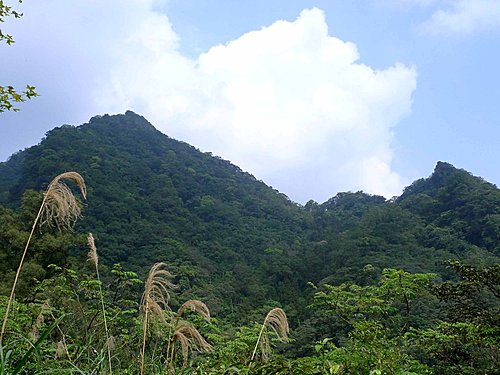 繼續往前走,沒想到,又看到指示牌,"薯榔尖800m",這麼短的距離就可以到達平溪第一尖,怎能錯過?算算時間還早,夫妻倆意見一致,決定登山去,目標~~平溪第一尖"薯榔尖",所以我們又登了一座"富士山"