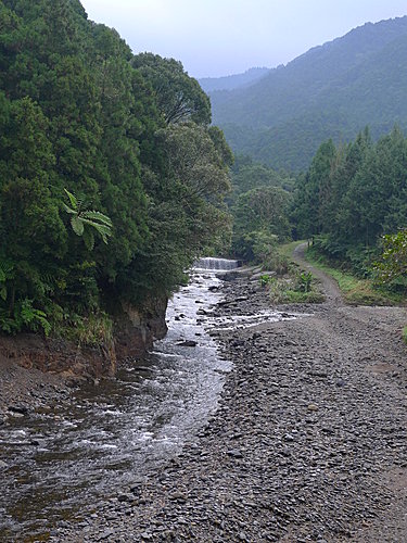 繼續往前,桶后溪中可見攔砂壩形成的瀑布,說實在的,感覺上破壞了溪流的自然美景,古道兩旁不時可見一片的柳杉造林。