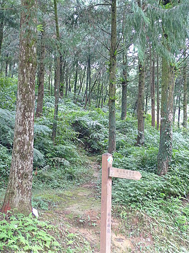 遇到路徑因崩塌而無法通行,所以開了另一條新的步道,好心的山友還綁上雨傘指示方向,若是換成指示牌會不會好一點?幾分鐘後便爬過這段陡坡,回到平緩的步道。