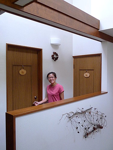GPS輸入民宿電話,搜尋不到,還好民宿地圖有先畫好,事實上也沒想像中難找,過了"甲斐大泉"火車站之後,一下就到了,外觀並不特別起眼,如果再補漆粉刷一下可能會好的多;我們比約定時間提早了兩個鐘頭到達,按了門鈴等了一會兒,一位溫文和善、穿著圍裙的中年男子來開門,因為已通過信,所以有一見如故的親切感,我們彼此用著不太流利的英文溝通著,大致上能夠了解,主人還貼心地問我們對什麼活動比較有興趣,一一用英文解說和推薦附近的景點,還拿了各種導覽地圖供我們參考,感覺真的很貼心。
