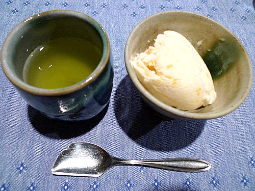 最後的甜點是手工自製的杏果口味的冰淇淋,果粒非常多,整個套餐融合西式和日式,搭配地恰到好處,我完全認同那位老外所下的評語,這些菜色的詳細內容已經記不太清楚,但是吮指回味,意猶未盡的感覺仍然記憶深刻。