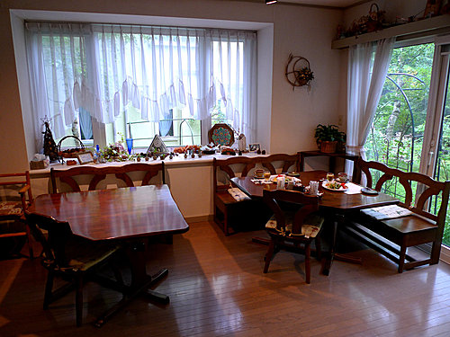 屋內佈置地很溫馨雅緻,除了有很多乾燥花做成的裝飾之外,還有用麵包做成"ユーリカ"字樣,二樓的三間房分別雕刻著不同的動物當做房名,我們住在"牛"棚,另外兩間沒記錯的話分別是"豬"圈和"雞"窩,頗有趣,完全符合清里這一帶的牧場特色。