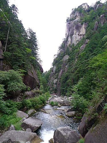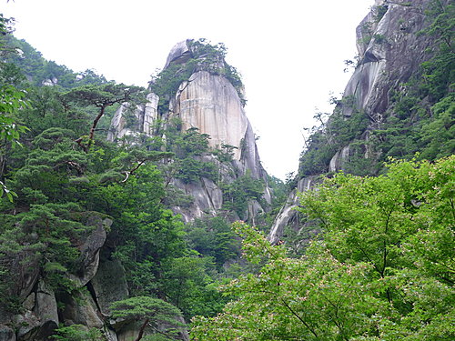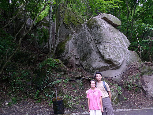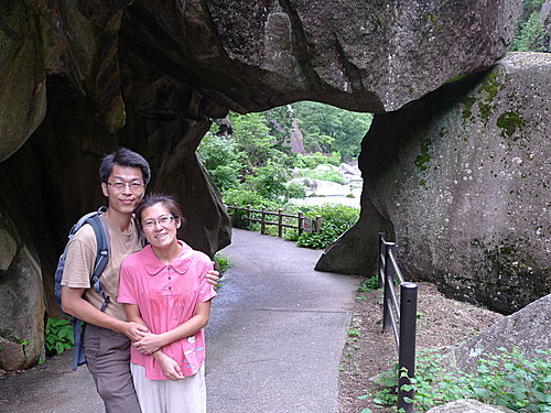 石門:巨大的花崗石疊成這座石門,上面的大石頭似乎隨時都會掉落。過了石門後有座小橋,大家都在此停留,換個角度看"覺円峰"。