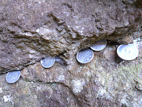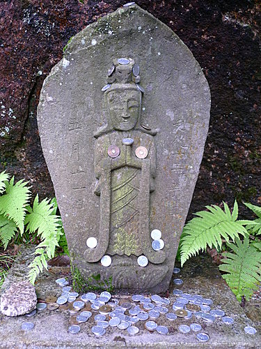 石縫間到處都塞著錢幣,頭大身小的觀音胸部加上兩個木蘭號飛彈最好笑。