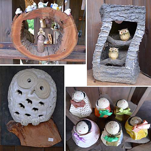 十一號館"土之館 爐漫窯",這裡的作品我們很喜歡,拍下來留念。其中一張是蠶繭作品,湊在一起比較熱鬧。