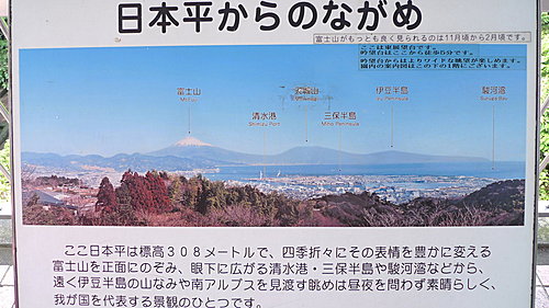 "日本平",這裡被評選為日本百景的第一名,來頭可真不小,山頂的觀景台標高307m,可以瞭望四方:腳下是全國鮪魚產量第一的"清水港",南邊是"駿河灣",望向東北可以看到"富士山",天晴無雲時還能看到"伊豆半島"和"南阿爾卑斯山",可是誰叫我們梅雨季節來!天氣雖然放晴了,仍然只看到灰灰濛濛的清水港和駿河灣。