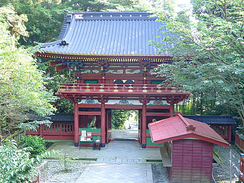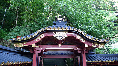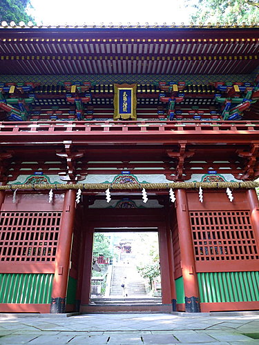 一出纜車站左轉,感覺到濃濃的古意,國寶級的山門上懸掛著天皇御筆所題的"東照大権現"。闗於德川家康公的神號為何叫做"東照大權現"?