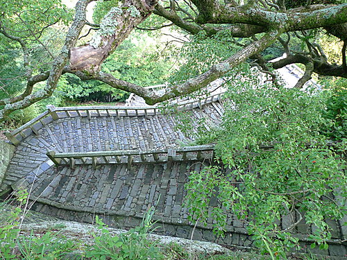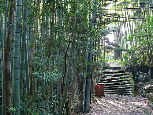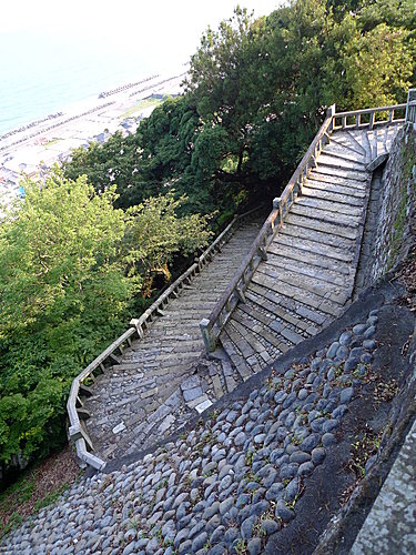 沒有纜車的時代,人們必須從海邊,拾級走上1159級石階,才能到達東照宮參拜。我們怕趕不上5:30的末班纜車,所以沒有走到底,遠遠看到下方的久能街道和鳥居。如果有機會,我們希望能從海邊一步一步走上來,一定和搭纜車來觀光的心情完全不同。
