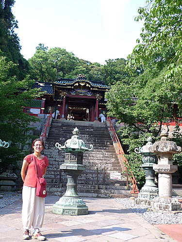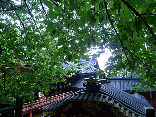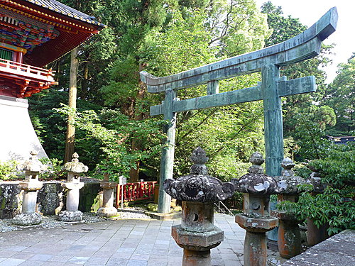 這裡的表參道、鳥居被濃鬱的樹林包圍,顯得古樸肅穆,和前面華麗的御社殿形成對比。中間的圓塔就是德川家康的墓地,連他的愛馬都陪祀在側。