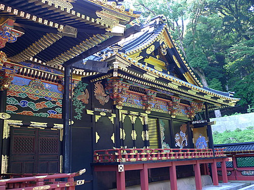 晚年他在駿府城隱居,75歲辭世,依照遺囑:1.靈柩葬在久能山,奉為神明;2.葬禮在江戶(現在的東京)的增上寺舉行;3.牌位安置在三河的大樹寺;4.日光山蓋妥御殿後再引靈過去。隔年,二代將軍秀忠公依照遺囑,敕令建照此宮,費時一年七個月完成,追封德川家康公神號"東照大權現",所以東照宮供奉的神明就是德川家康,難怪德川幕府的三葉葵家徽隨處可見,而東照神君是負責掌管和平、開運、學問、除厄之神。