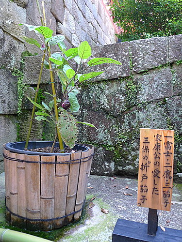德川家康晚年愛好眺望富士、放鷹打獵,"茄子"是他最喜歡的食物,認為是"稱霸天下的男人的食物"。這棵是三保的"折戶茄子",果然和平凡百姓家的完全不同。
