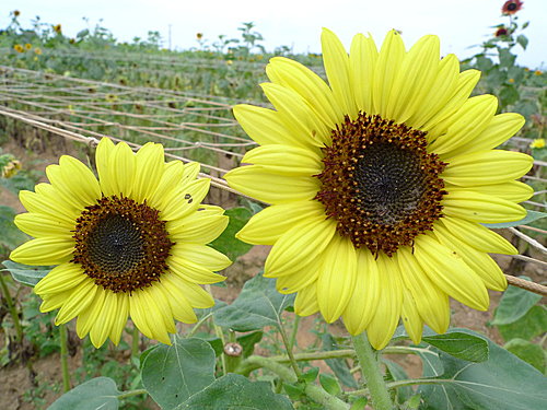 向日葵花海:太陽公公起床之後,遇見了"蓮花"颱風,就又躲回家去了,所以向日葵們都垂頭喪氣,變成向地葵,無精打采!