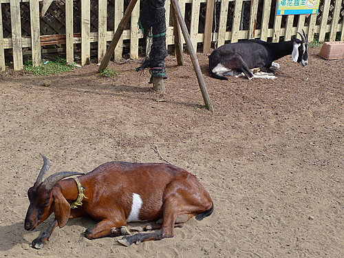 羊咩咩的家:羊騷味頗濃,這裡共有三種,頭一直伸出羊圈向遊客乞食的是"台灣山羊";一棕一黑坐在草地上的是"努比亞山羊";