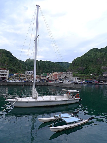 從五聖宮前停車場沿著濱海公路往鼻頭步道出發,人行步道沿著鼻頭港邊鋪設,漁港不大,停著的漁船也不多,竟然有一艘又新又炫的帆船遊艇。