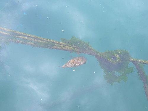 發現有好多的魚群優游其中,有色彩鮮豔的熱帶魚,也有圓滾滾的河豚,看著看著,短短的人行步道,竟花了我們不少的時間,但大人小孩都看魚看得蠻快樂的,也就不必急著趕路。