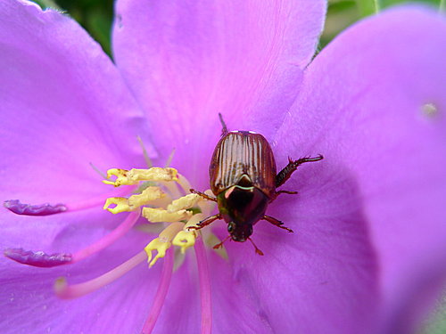 在野牡丹花朵中,分別看到"藍豆金龜"與"蒙古豆金龜"。