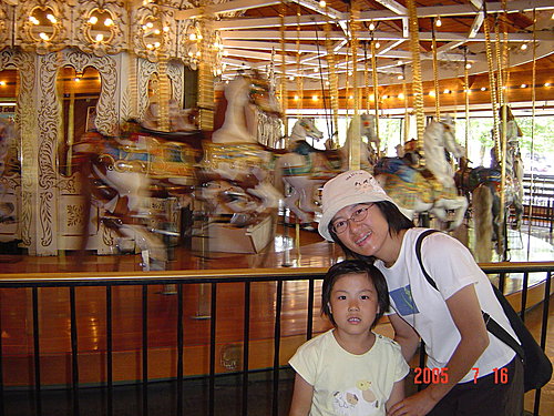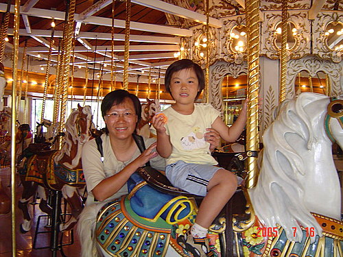 1909年手工雕刻的旋轉木馬:我們在這裡觀察了很久,終於還是吸引我們來玩的主要原因,是因為牠的木馬很高大,旋轉的速度又很快,每轉一圈還可以搶妹妹手上拿的那種套環,很具有娛樂性,我們想試看看最後可以換到什麼獎品,結果是:......
