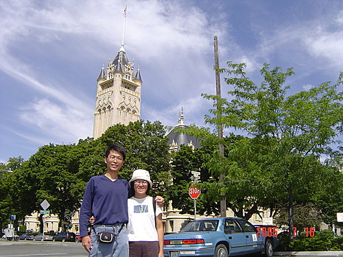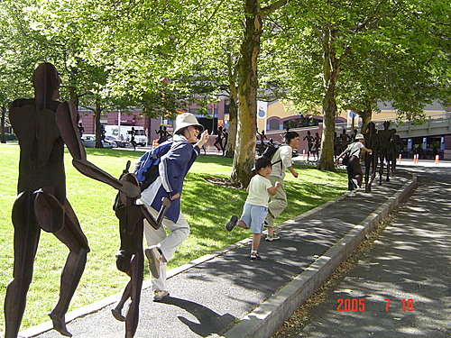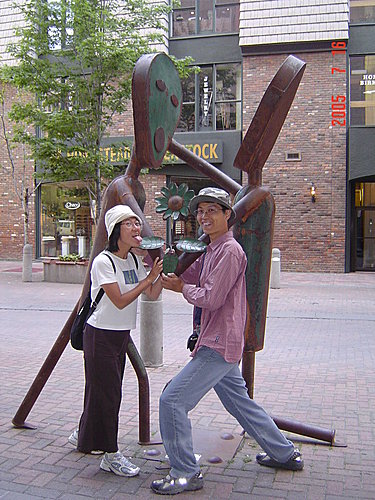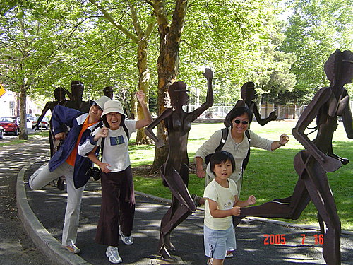 這個城市在每年五月的第一個星期日都會舉辦路跑活動,來慶祝紫丁香的盛開,參加的人數年年成長,已經超過百萬人次了,可見是個運動風氣不錯的城市。市中心的綠廊地帶設置了許多路跑的人像,我們當然也不落人後,一定要共襄盛舉才行。從跑步姿勢就可以發現翠瓜運動細胞比較好,而小融融的動作真可愛,有一點爆笑
