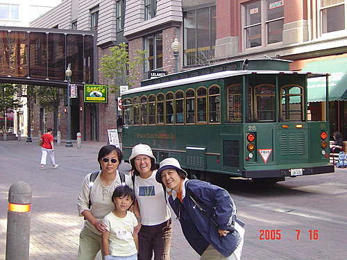 搭乘電車回市區時,天色已經黑透,欣賞了熱鬧的街頭表演,風笛聲充滿了整個城市,開車離開時,正好遇到棒球賽結束,交通大打結,可是我們一點也不氣惱,反而覺得用另一種方式恭逢其盛,非常興奮。之後載著二姐和融融到市郊住宿(他們的班機時間是明天),我們搭乘深夜的班機返台,結束了充實忙碌的--美西四大州三大國家公園15日遊。