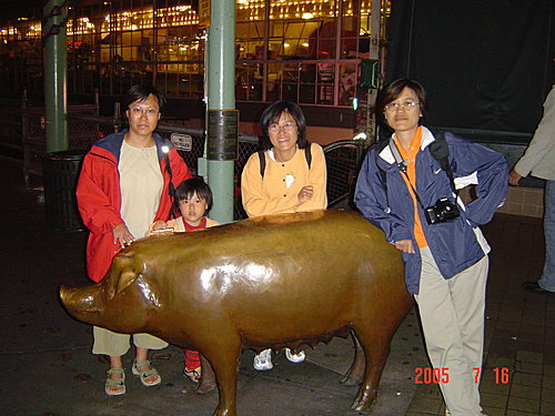 Pike Market派克市場:1907年,西雅圖的農民為了避免被商人剝削,開始將自家生產的新鮮蔬果運到這裡販賣,當時這裡叫做"農夫市場"。後來,部分的農民將攤位租給漁夫,接著,小吃攤、藝品舖都來了,市場的規模也就越來越大。可是,到了1970年時,市場實在太老舊、太髒亂,變成了市容的污點,政府因此決定拆除,但是當地居民捨不得這塊充滿歷史情感與回憶的地方,最後用公民投票的方式,決定用重建的方式保留下來。