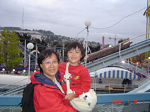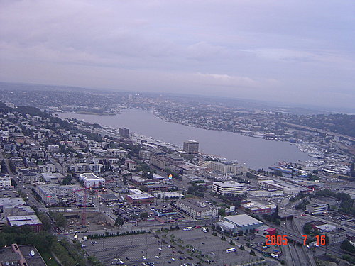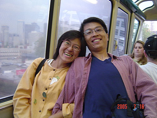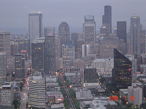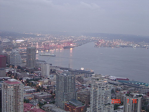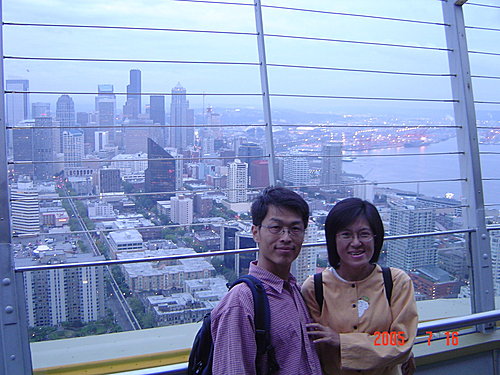 針塔上可以看到整個西雅圖市的高樓與港灣美景,我們從黃昏,一直等到華燈初上,天都沒能全黑,可是我們的飛機時刻卻一刻刻地逼近,不得不離開了!