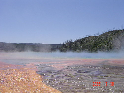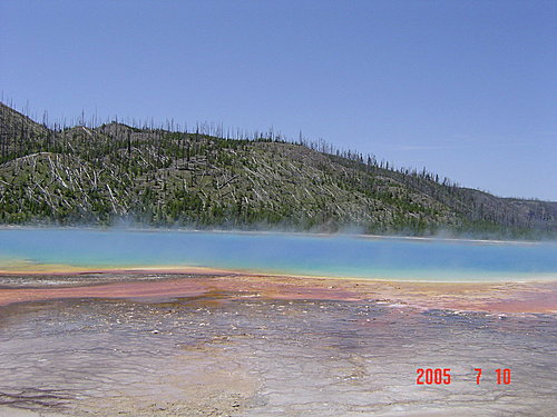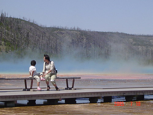 這裡最棒、最有名,而且非常大的一池:Grand Prismatic Spring大七彩湖,真的非常漂亮。
