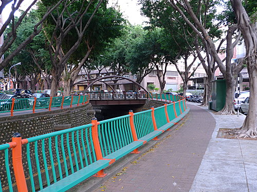 中午,在台中復興路的台中肉圓吃了午餐,隨即出發往太平市續登三汀山;建成路轉136號道到太平市,到一江橋前轉左側東平路二巷,往前過中興橋即轉左側產業道路沿溪而行,不久,路旁有咬人狗坑生態景觀道路碑,繼續往前到第一登山口附近停車。(下山發現大部分的人,繼續往前,到來福山莊前路旁停車,沿水泥產業道路往上登山)