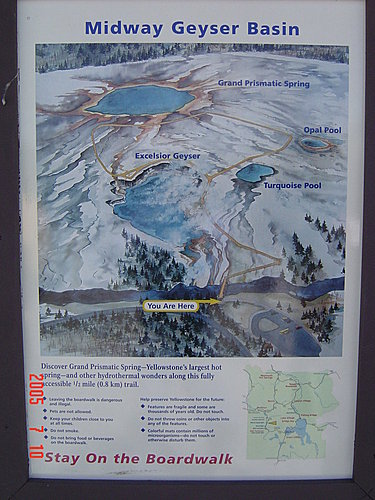 黃石公園內的道路大致上呈8字型,當初行程及住宿安排都很順暢,誰知,進了公園才看到:"峽谷到高塔瀑布區禁止通行",猛一看到時,真是晴天霹靂,但是又無可奈何,住宿早已訂好,無法變更,只能改變行程順序,但是不論怎麼改,行進路線還是支離破碎,常常要在8字型的中間交錯處跑來跑去,好像鬼擋牆!
